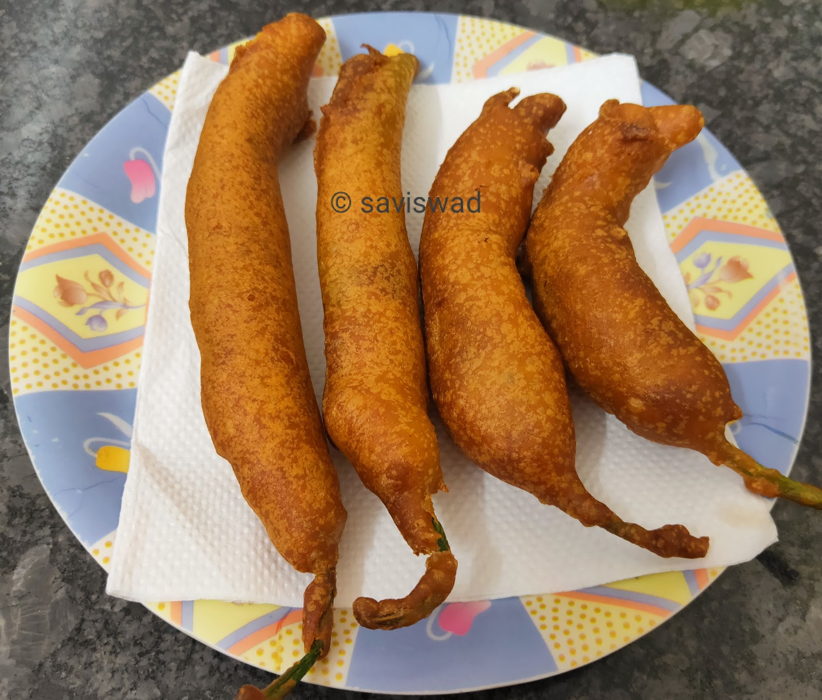 - Now, take a slit Mirchi and dip in the Mirchi batter neatly