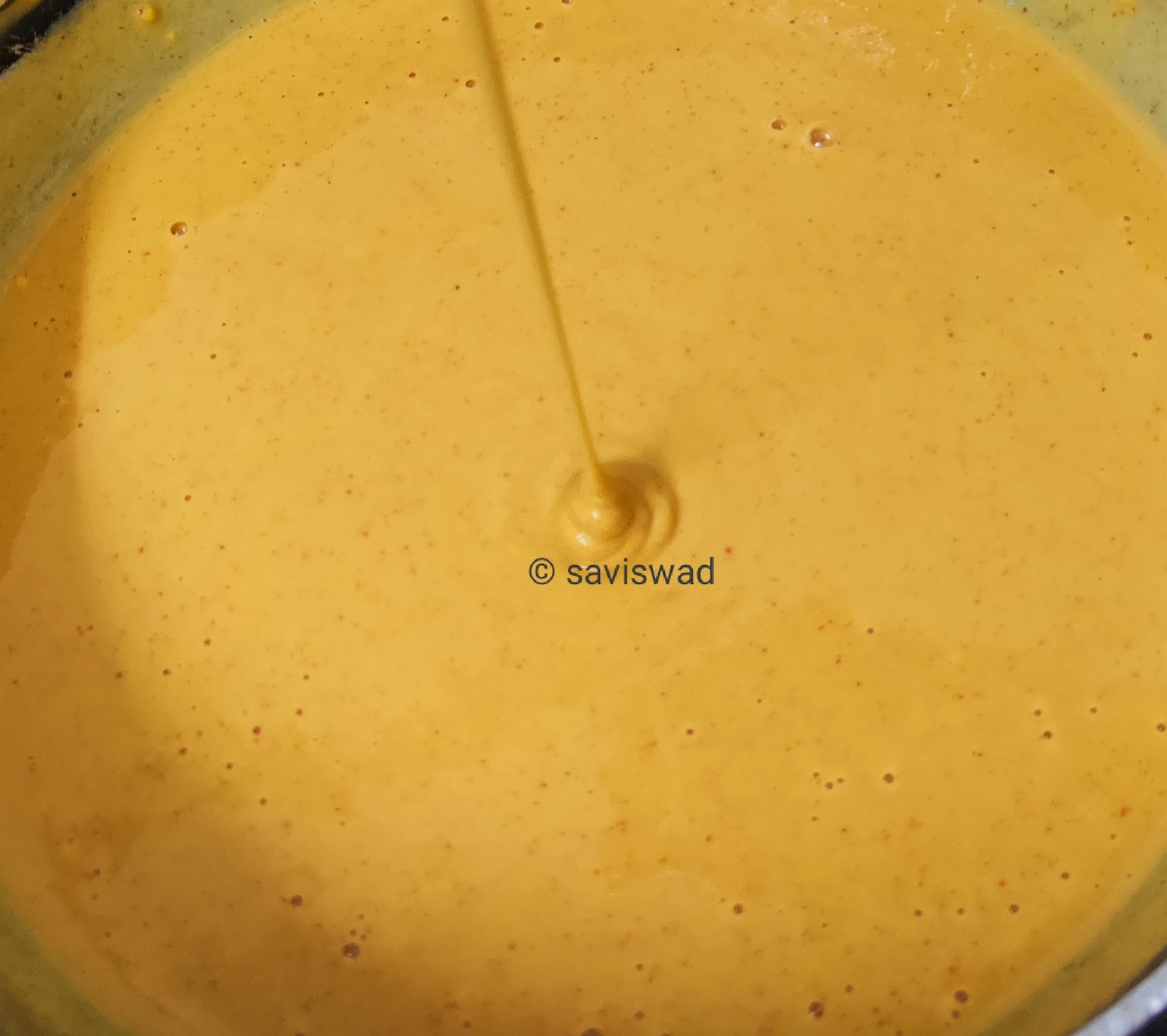 - Now heat up 3 tbsp of oil and add this to the batter and mix well. Now your Mirchi batter is ready