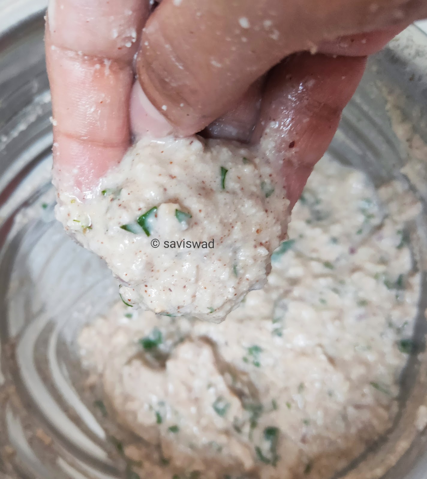- Now add rice flour, rava & soda to the above ingredients and mix well. Your Bonda batter is ready
