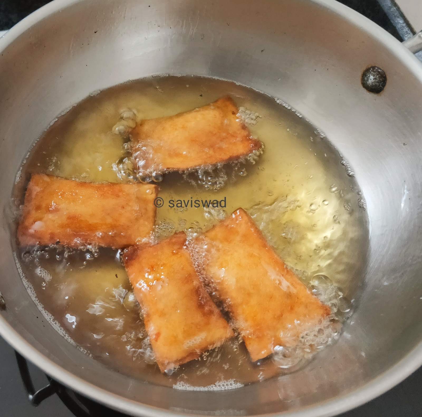 - Once all pockets have done, heat up the oil in a pan for frying and deep fry the pockets