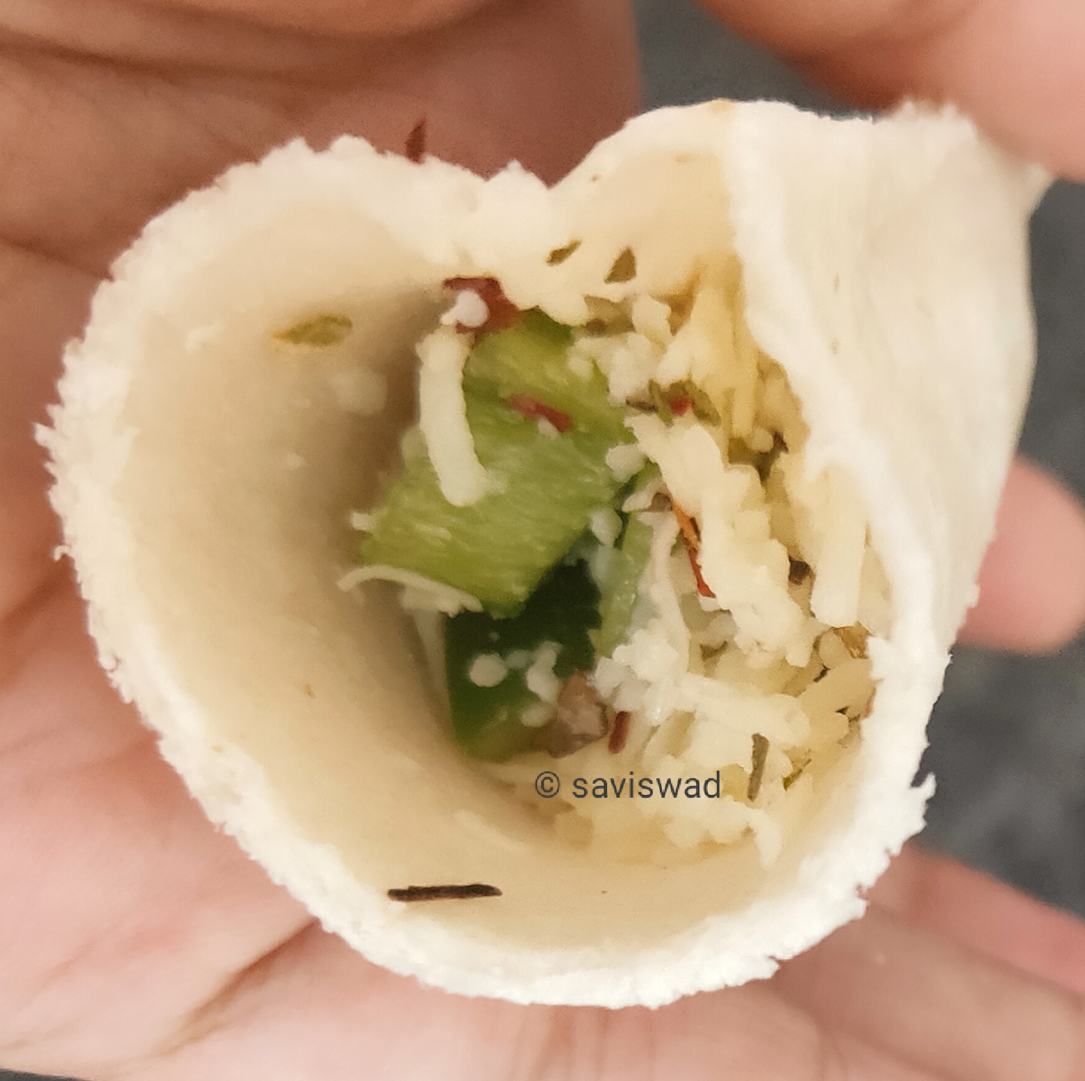 - Stuff the cheese masala into the pocket and lock the fourth edge
