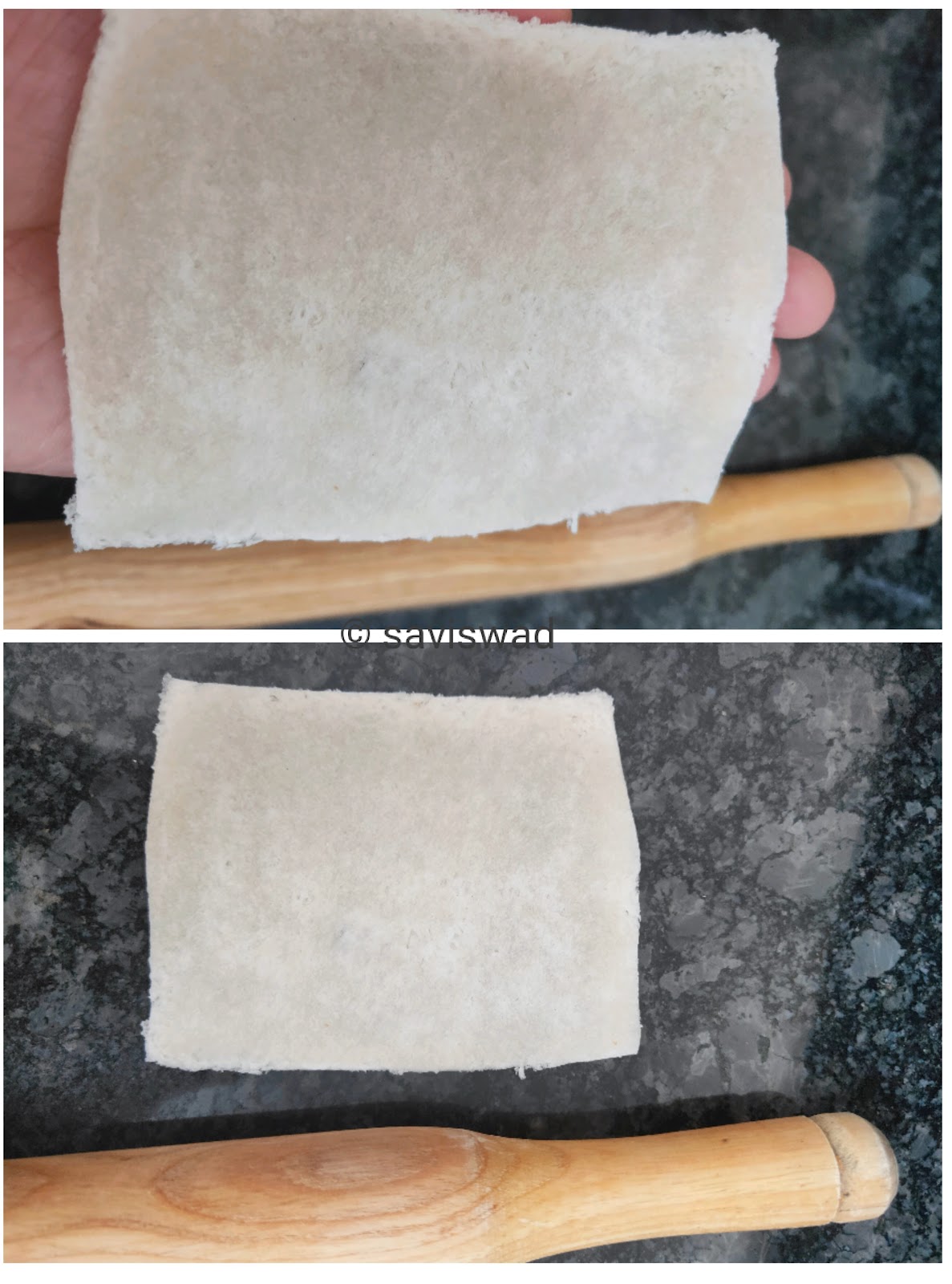 - Now brush the edges with water and fix three edges. Press lightly and make like pocket